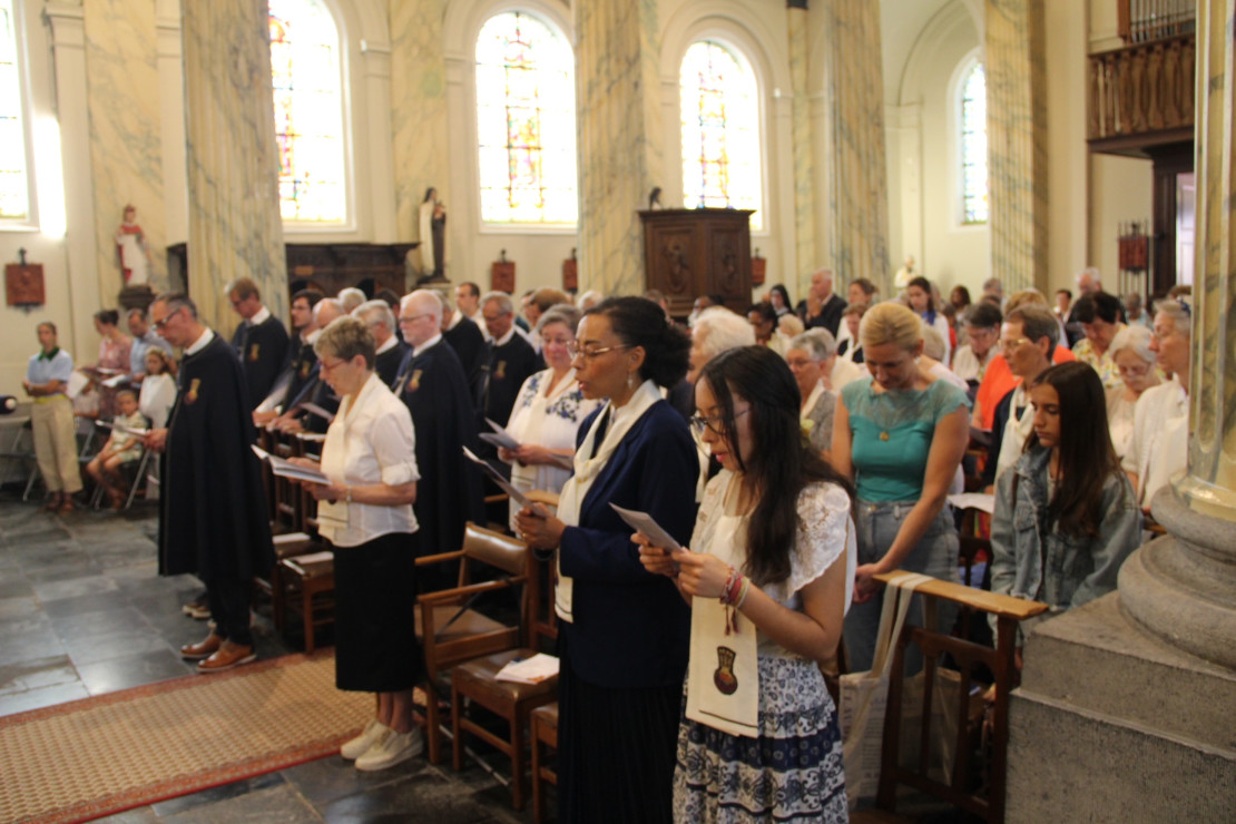 A dix heures, l'église de Villers-Saint-Amand, où Notre-Dame de Villers avait pris place, était pleine. Enfants, jeunes et moins jeunes, de différents pays, de diverses langues, de couleurs différentes aussi, tous ont uni leur voix pour louer Dieu et honorer la Vierge Marie. Nous nous savions profondément unis aux fidèles de notre Unité Pastorale qui s'étaient rassemblés autour d'Elle à la Chapelle de la Cavée à Isières. Ensemble nous avons porté devant le Seigneur toutes les intentions du monde et de l'Église. Au cours de la célébration plusieurs adultes et quelques enfants se sont engagés, comme Pèlerins de la Sedes Sapientiae. Désormais, ils accorderont une attention particulière à la dévotion mariale authentique, à la fidélité envers l'Église et ils apporteront leur aide pour l'entretien du sanctuaire de Villers-Notre-Dame.
